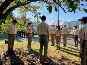 例年はたこ焼きの模擬店を出店するのですが、今年はマンパワーも限られていることから団活動のPRブースを出すこととしました。ボーイ隊は市川市内5団共同で清掃奉仕を実施しました。