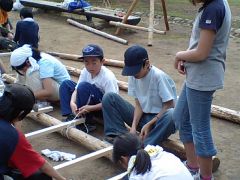 スカウト達で力を合わせて、立派な橋が出来上がりました。