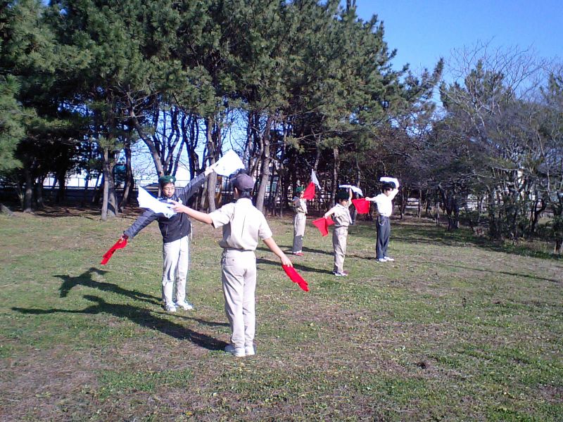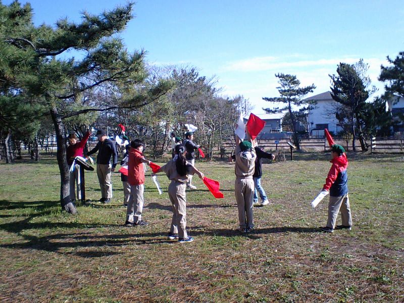 新年集会に備えて、手旗の練習をしました。