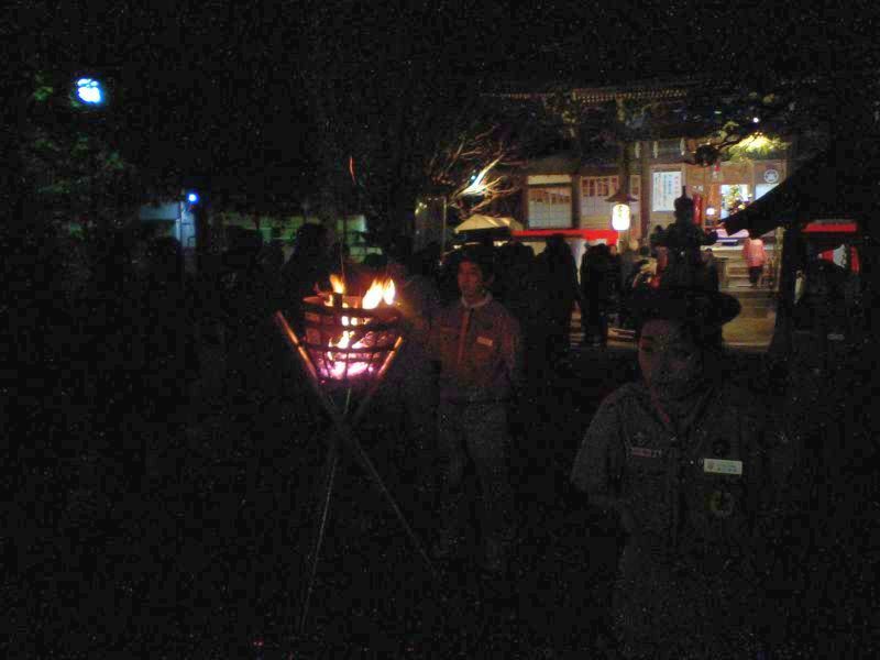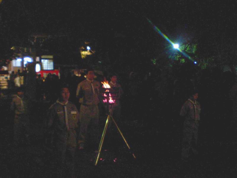 40年以上続く当団恒例行事の「かがり火奉仕」。