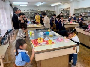 調理実習室へ移動して、クリスマスケーキのデコレーション&ランチ。