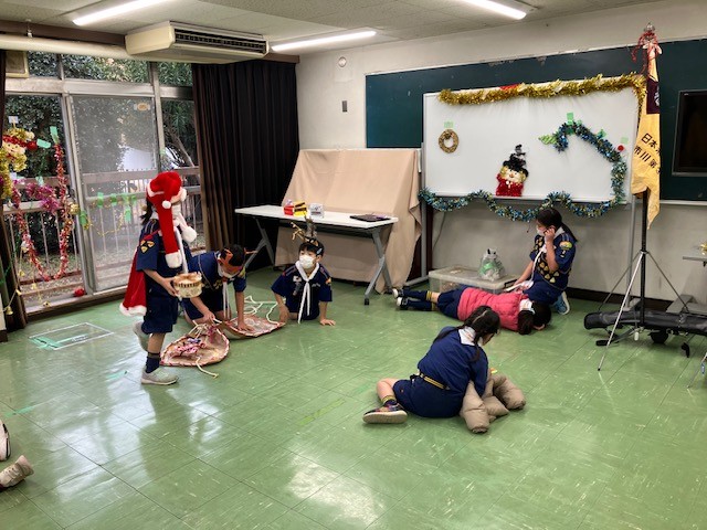 12/21(日)、西部公民館でビーバー隊・カブ隊合同のクリスマス集会を実施しました(カブ隊スカウト6名、ビーバー隊スカウト2名(内1名は仮入隊)、一般見学者2名が参加)。
