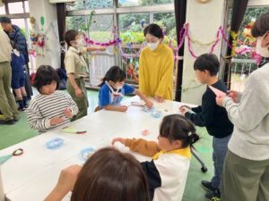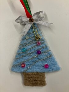 次に、紙と毛糸を使って、ツリーを作りました。